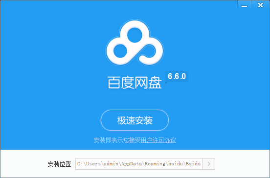 1、在本站下载百度网盘后,在电脑本地得到一个.exe文件,双击.exe文件进入百度网盘安装界面,您可以点击【极速安装】,软件会默认安装,或者您可以点击安装位置后的>,弹出选择安装位置界面,可以自己选择百度网盘客户端安装位置,选择完成后点击【极速安装】。