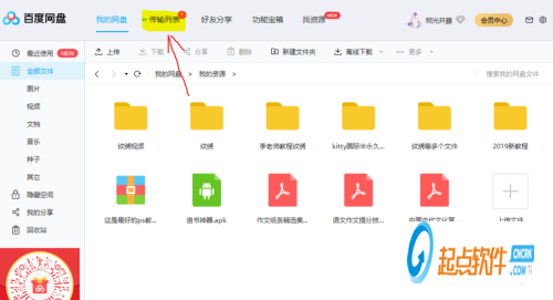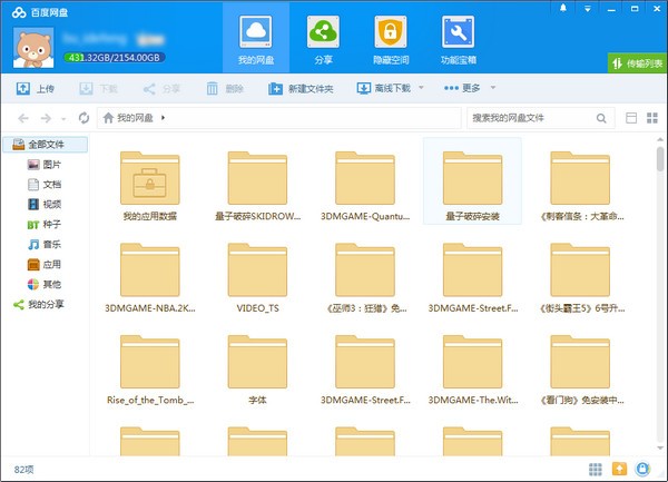 百度云盘的主界面。