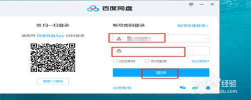 3、百度网盘客户端安装完成,您可以输入您的账号和密码就可以登录百度网盘了。