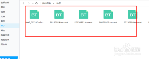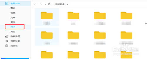 在百度云的左侧列表中找到各种文件的分类,找到“种子”这个菜单,点击进去,里面就是种子列表。