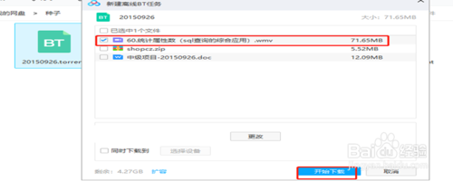 点开种子列表之后,在众多的种子当中,选择其中一个种子,然后是双击它,这时候就解析出种子的信息了,选中要下载的信息,然后点击“下载”。