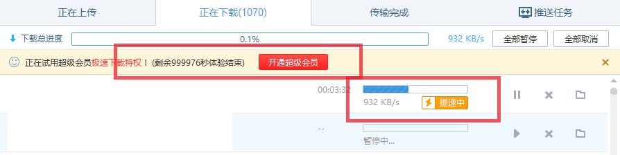 6. 我们还可以在界面的上方找到极速下载特权,我们点击的话就可以试用极速下载特权。