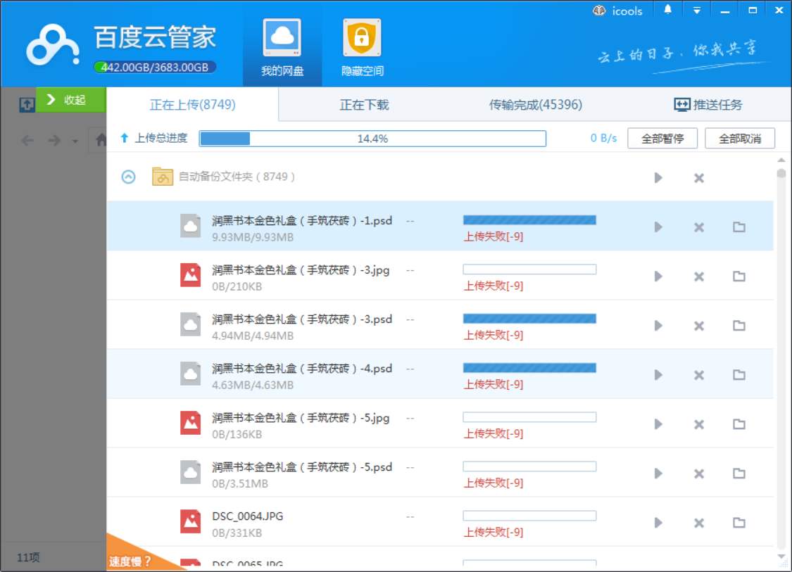 百度网盘对非会员做了限速,非会员速度会远远慢于普通用户,大约在100kb左右