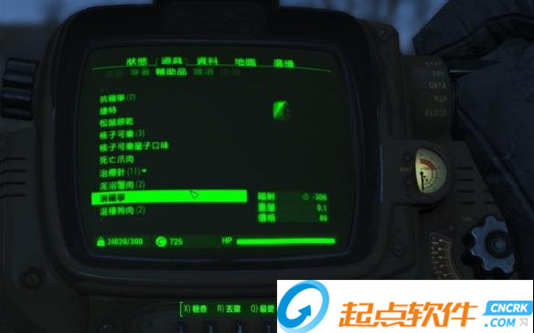 最后是我们想要恢复生命值上限所必须的药物:消幅宁。一剂消幅宁能让玩家的辐射数值直降300。可谓是神奇至极。