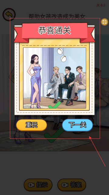 4完成改造后会出现通关提示,若想继续挑战可选择进入下一关,若想重新体验当前关卡则可选择重玩。