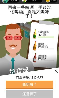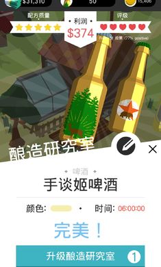 2.啤酒花不够的时候,可以用时间来恢复,这个是定时生产的,速度并不会很快,在啤酒花生产的期间,可以用已有的啤酒花进行啤酒酿造,然后去销售做订单,总的来说就是买啤酒赚钱,用赚来的钱升级制造啤酒的设备,制造出更加美味好喝的啤酒,然后再销售出去,赚更多的钱,扩大经营模式,每个啤酒花对应1次配方酿造,手动点击装瓶,凑订单或放在吧台出售,钱用来升级各种升级项和装置,比较常规的游戏体验。