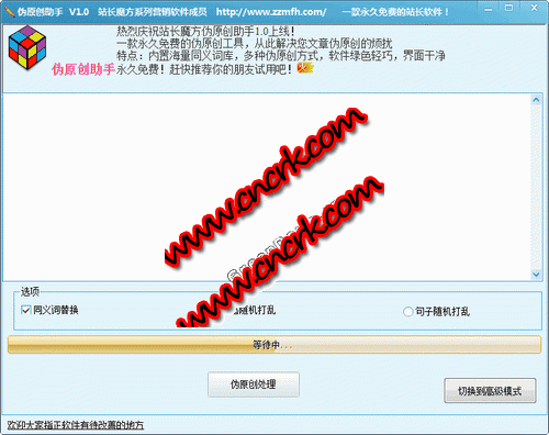 伪原创助手 V1.0.0 简体中文绿色免费版 伪原创助手是站长魔方系列营销软件中的代表“成员”。本软件绿色小巧,永久免费,不修改系统注册表,免安装。