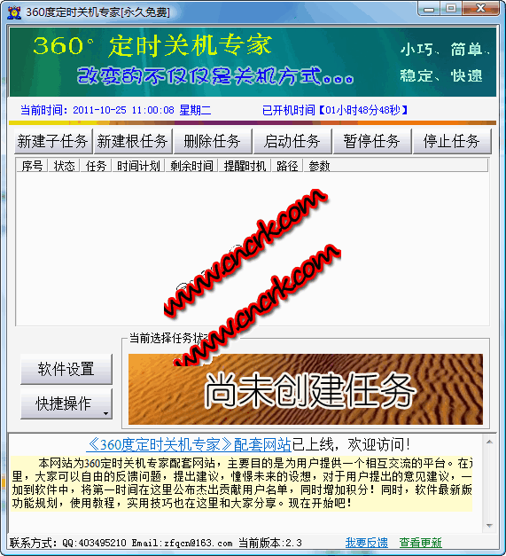 360度定时关机专家官方下载 V2.3 绿色免费版 360度定时关机专家是一款以自动关机、定时关机、倒计时关机、每日定时关机为主要功能,附带自动锁定、自动重启、自动休眠、自动待机、自动运行指定程序、自动打开指定文件、自动打开指定网页,并每种操作都有对应的即时操作模式的针对个人用户永久免费使用的可多任务并行工作的自动关机软件。
