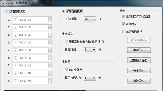 EyeLoveU是一款眼睛保护软件,它能够定时提醒你注意护眼,可以帮助父母解决孩子沉迷电脑的锁屏功能,当用户长时间的使用电脑时,他就会使电脑屏幕自动锁住,达到定时休息和护眼的效果。