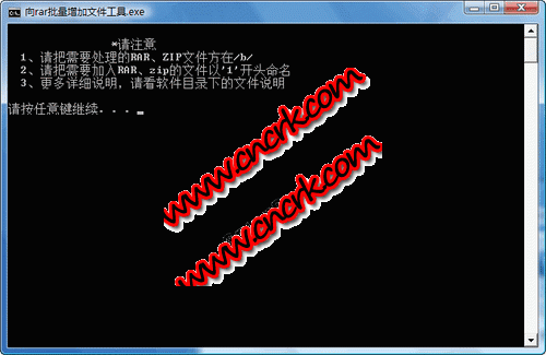 批量rar文件增加工具支持增加所有文件类型,可以向压缩文件增加url类型文件、文本类型文件、doc类型文件等等,支持向rar压缩文件,同时支持向zip压缩文件里增加文件。