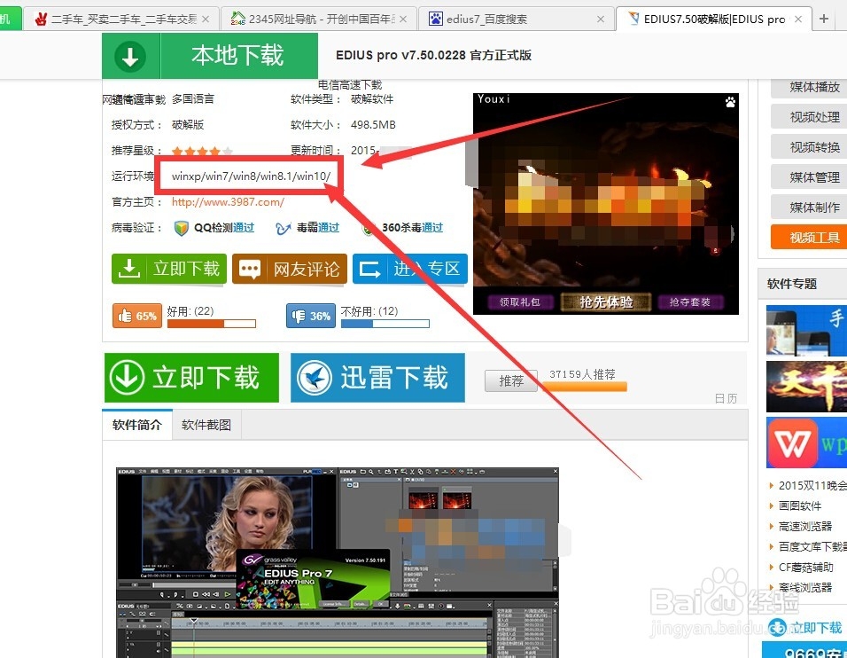 去网上下载EDIUS的最新版本,要求必须是支持win10系统的。