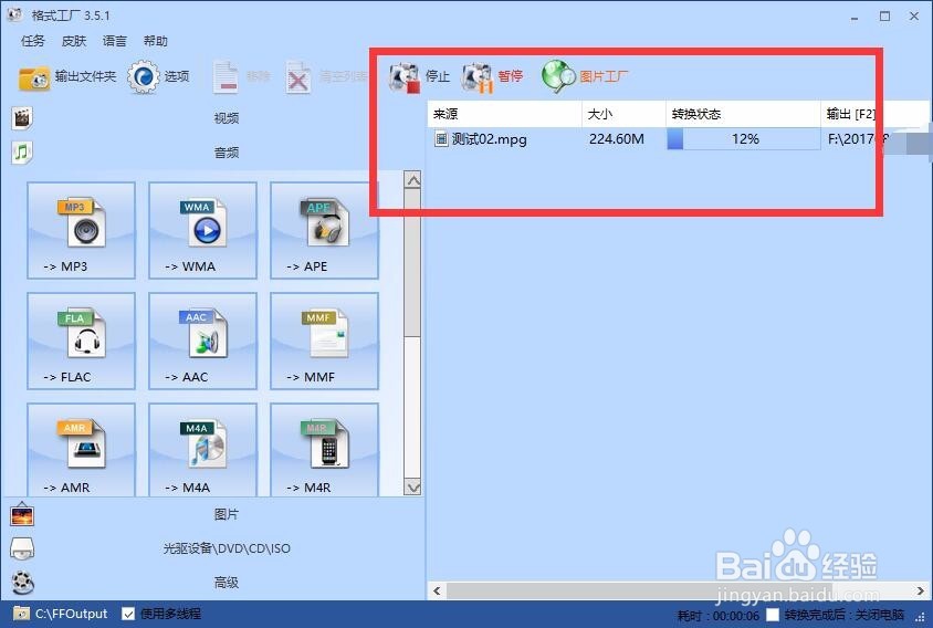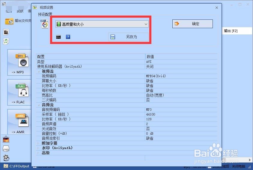 选择好了确定后,软件会提示我们保存的路径和相关设置,根据我们的需求设定好了之后,就会开始输出了。