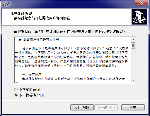 4、选择“我接受协议”这一项,然后点击“下一步”