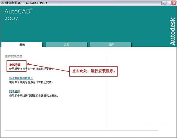 第一步:将下载下来的AutoCAD2007压缩包解压,解压后打开安装文件运行安装程序“Setup.exe”开始AutoCAD2007的安装。