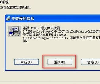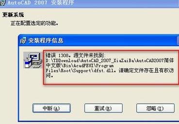 1、程序安装到一半的时候,安装程序会提示我们缺少dfst、dll文件,我们这时候千万别认为是安装程序有问题之类。也不要随便点中止和忽略。如图。