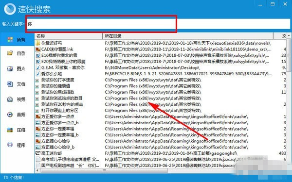 3、便捷: 速快文件搜索官方版可以对本机文档、图片、程序、视频等智能分类,查找更轻松