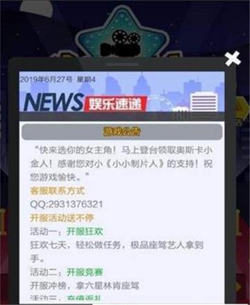 1、小小制片人手游是一款将让你亲身感受体验下当影视剧制片人全过程快感的经营类游戏2、扮演制片人的角色,不断制作成功影视作品来赚钱,扩大规模;
