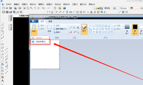 第四步如图所示进入位图图像在工程图中的画图,点击粘贴来源。