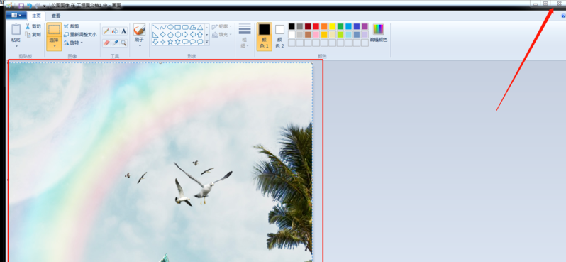 第六步如图所示图片被粘贴到画图工具来了,可以进行二次编辑,点击关闭,