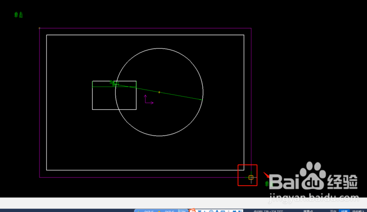 (1)在点的捕捉方式为“自由”的状态下找圆心,必须利用特征点菜单,即在输入点状态下,按下空格键,就会在屏幕上光标处弹出捕捉菜单,从中选择圆心,然后左键单击已画出的圆或圆弧,圆心即会高亮显示。当然利用“智能”状态找圆心非常简单,但有时必须利用前者。