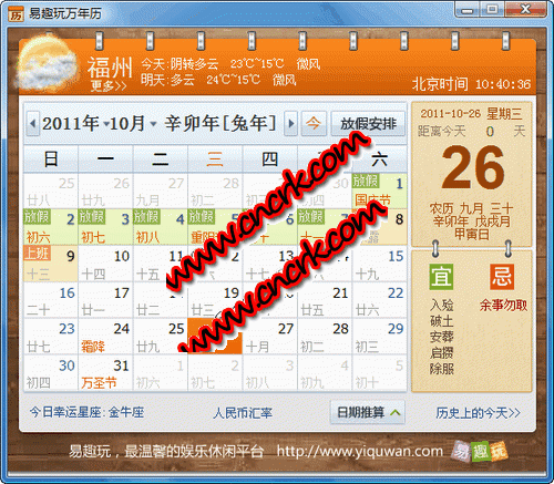 感谢你下载和使用易趣玩万年历。本万年历由易趣玩工作室设计开发,采用最新的Window7的操作方式,并且吸取学习了苹果手机的部分交互效果,设计了精美的UI界面,并且集成了最常用的功能,是一款趋于完美的万年历产品。