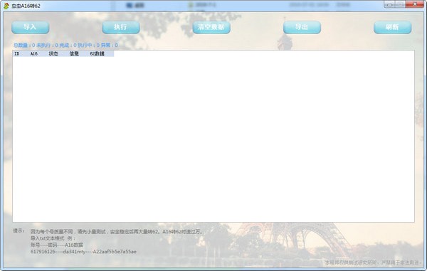 因为每个号质量不同,请先小量测试,安全稳定后再大量转62,A16转62时速过万。导入txt文本格式,例: