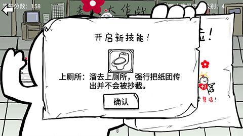 很写实的技能~~佯装出去上厕所,然后把纸条传送出去,使用这个技能可以传送纸条,而且100%不会被老师发现。