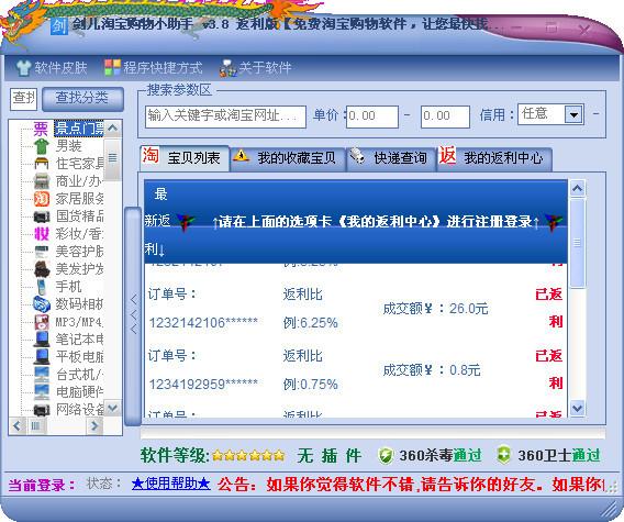 剑儿淘宝购物小助手是一款适用在淘宝网购物的小工具。剑儿淘宝购物小助手具有快递单号查询功能,提供淘宝网没有的排序方式,高级搜索让您找商品易如反掌