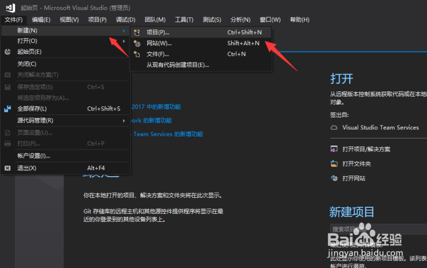 在菜单栏中选择文件菜单,选择新建,点击项目,来新建项目。