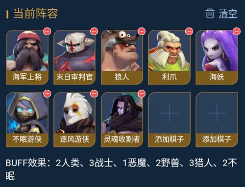 外挂:海妖*2(增强团控)、暗之灵(打肉)、灵魂收割者(减甲)