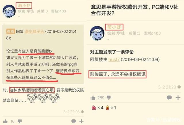 乍一看这本意上是为了《多多自走棋》更好地发展,但是记性好的网友们找到了一个截图。这个截图是当初巨鸟多多工作室在DOTA2上面发布《刀塔自走棋》取得了成功之后,他们收到了很多家公司的邀约,其中就包括腾讯。而当时巨鸟多多的一个工作人员,ID为“萌小虾”也是在论坛上回复:“绝对不会和腾讯合作”。这个回复也是让很多玩家十分震惊,毕竟能拒绝腾讯的邀约实在是很难。