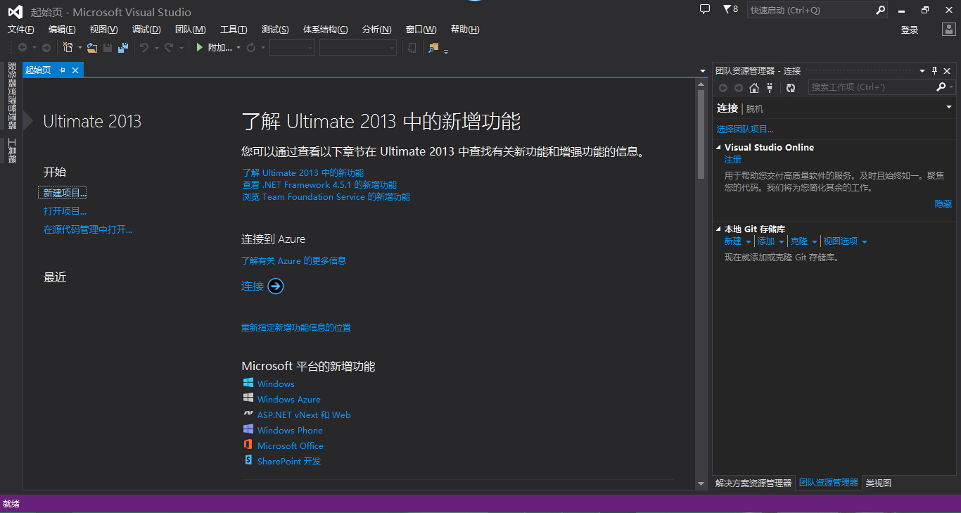 过一会,VS2013 就打开了如图所示的界面