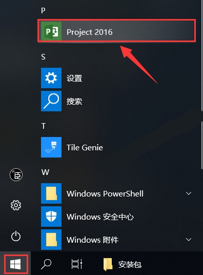 8.在开始菜单,选中【Project 2016】用鼠标往桌面拖动即可创建桌面快捷方式。