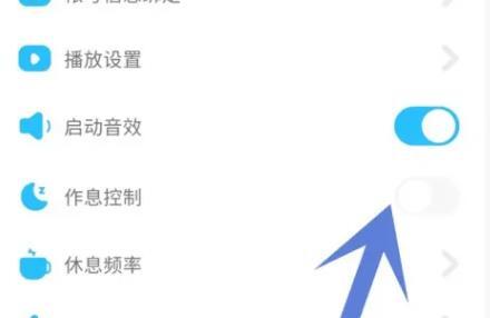 3.在设置中,找到休息控制,点击打开右侧开关