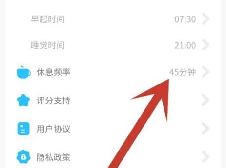 2.在设置中,找到休息频率,点击打开