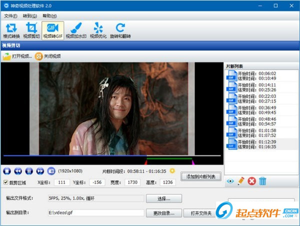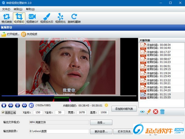 神奇视频处理软件内置了多种多样的视频处理功能,目前支持的全部功能如下(软件后续版本会加入更多强大功能,并且可以免费升级):1. 视频片段剪切