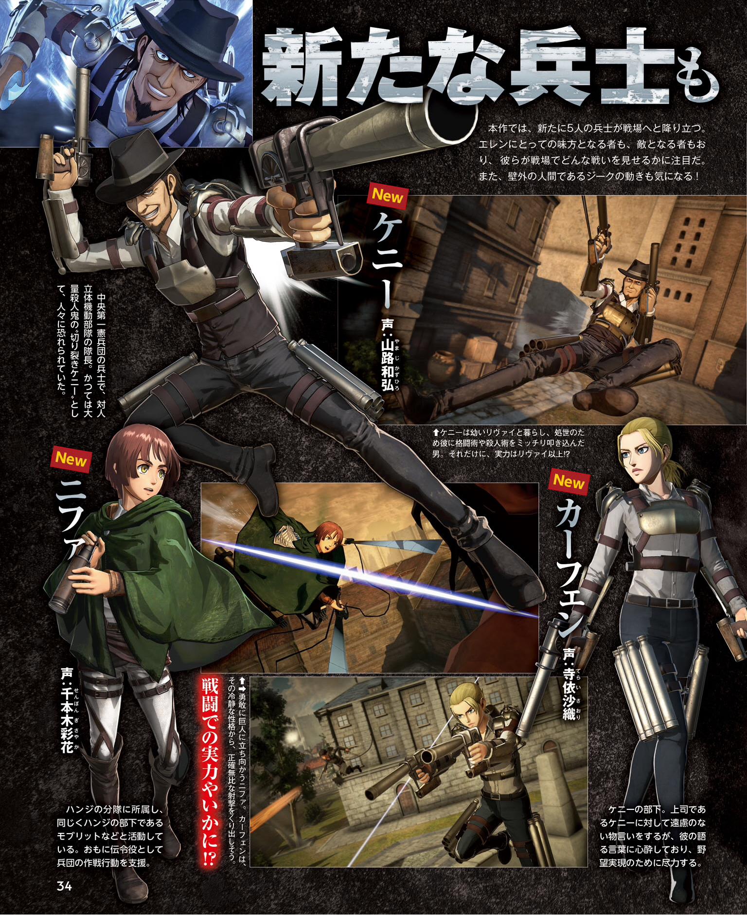 ●动作场景 “夺回墙外模式”中,玩家能让肯尼装备刀刃与巨人战斗等等,体验 TV 动画中不可能实现的动作场景。