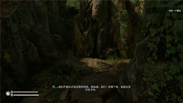 在一个小瀑布的旁边,特别隐蔽还有大石头挡着。有鱼有猪不缺肉吃。