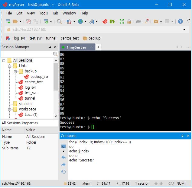 以前,Xshell只能使用撰写栏向终端发送一行准备好的字符。软件引入了组合窗格,使用户能够准备多行脚本或字符串,并同时将其整体传送到当前会话或多个会话。