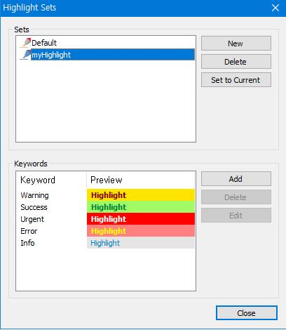 软件允许用户使用用户定义的文本和背景颜色来区分终端的字符串输出。用户可以轻松管理他们想要突出显示的关键字,也可以创建分组(突出显示集),以便在特定情况下使用设置的关键字。