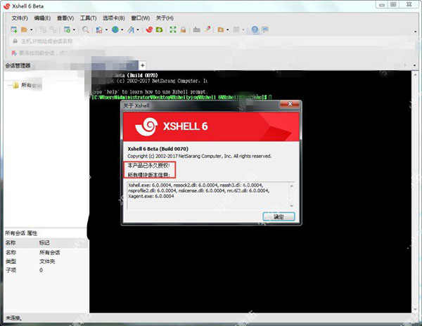 Xshell6是一款强大的安全终端模拟软件,它支持SSH1、SSH2以及Microsoft Windows平台的TELNET协议,可通过互联网到远程主机的安全连接以及它创新性的设计和特色来帮助用户在极其复杂的网络环境当中进行工作与模拟。软件可以直接在Windows界面下访问远程端不同系统下的服务器,从而可让用户更好地进行终端的远程控制,且终端用户还可根据需要在任何给定的时间中运用多个终端会话,以及与不同主机比较终端输出或者给不同主机发送同一组命令,且还有着超多的功能包括标签环境。广泛拆分窗口、同步输入和会话管理等来方便用户的工作。与其他同类型的终端模拟软件相比,软件的Screen不会闪屏,并且可以回滚,键盘映射的兼容性也比较好,可以展现tunnel等功能,并支持布局切换,同时它还支持ZModem协议,还支持tab、自定义脚本、保存密码、多机管理等功能。新版Xshell 6引入了全新的会话管理器,借助它用户可轻松创建、编辑和删除会话文件,且拥有更加可靠的UI,会话管理器窗格,撰写窗格和其他窗格可以停靠在软件的主窗口中,用户可以简单地拖放以利用停靠功能。同时新版还允许用户使用用户定义的文本和背景颜色来区分终端的字符串输出,根据这个功能用户可以轻松地管理他们想要突出显示的关键字,也可以创建分组(突出显示集),以便在特定情况下使用设置的关键字。除此之外,新版还增强了跟踪消息并添加了更多的日志记录选项,以便用户可以更高效地识别和诊断连接问题,当必须考虑通信速度时,增加了传输延迟特性以促进字符串传输的协商。小编提供的为Xshell 6破解版,免安装,免汉化,免破解,免破解补丁。【xshell6破解版安装步骤】