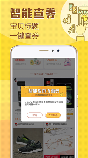 1、智能搜券:一键搜券,购物省心。2、品牌优选:精选品牌,大额折扣。