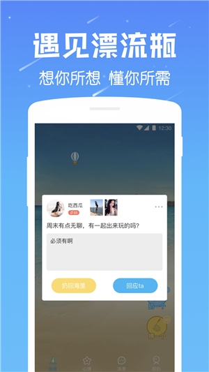 遇见漂流瓶app是一种全新的相遇方式:简单、心动、惊喜,相遇本就该如此美好。