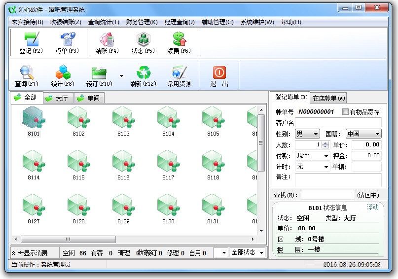 1、该软件采用客户端、服务器端(C/S)数据结构模式开发,既支持SQL Server等数据库系统也可在无其他外部数据库系统的支持下作为单机版或自动以F/S方式组网运行;2、方便了该行业的来宾接待、收银结账、查询统计等操作;