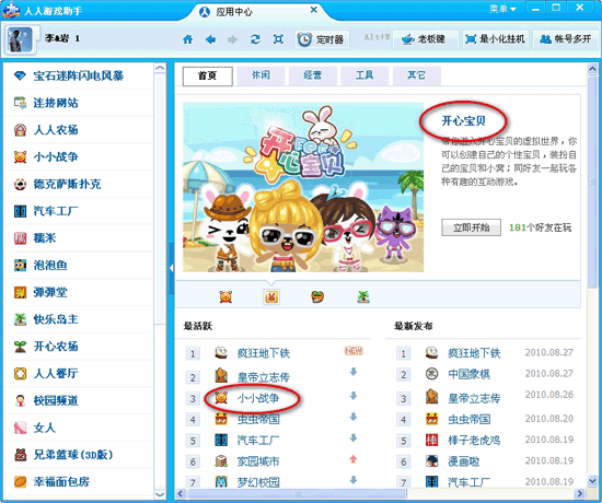 人人游戏大厅(原人人游戏助手)是人人网推出的一款游戏辅助软件。支持多帐号同时登录、设置游戏定时提醒,方便拥有小号的专业玩家挂机升级。农场类、经营类、宠物类、益智类等上万款游戏,任你选择、点击即玩!是大众网民的必备娱乐软件。