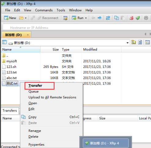 5、在左侧点击鼠标右键,在弹出的选项中点击【transfer】选项就可以了。