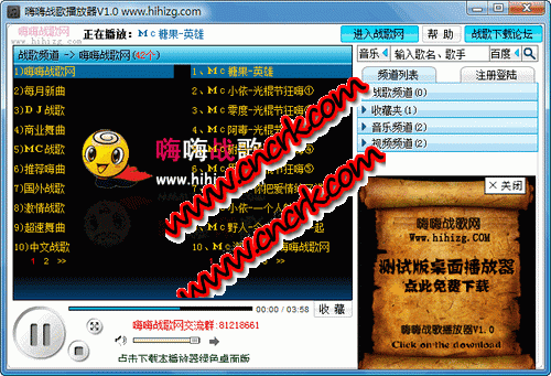 嗨嗨战歌播放器是一款专为游戏玩家自订的音乐播放器,内置1000首以上激情战歌,mc音乐,指挥专用音乐,各种网游视频音乐。