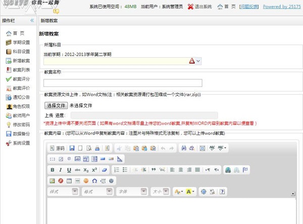 内置十二个管理界面,包括教案设计