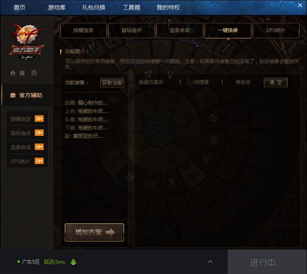 dnf官方助手特权三、 一键换装