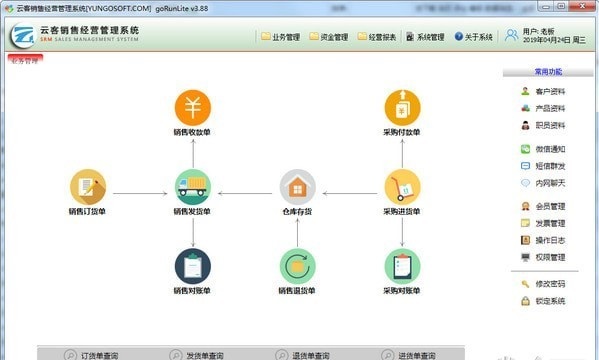 经营看板展示了公司的关键运营情况,同时提供业务趋势图、畅销商品排行榜、重要客户排行榜等图表,让老板对公司运营一目了然。